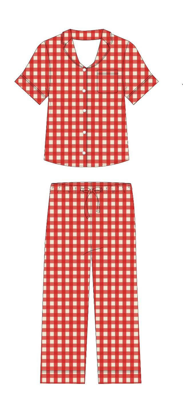 PJ print: red and CREAM gingham. Lighting makes them look white, but they’re cream fyi :)