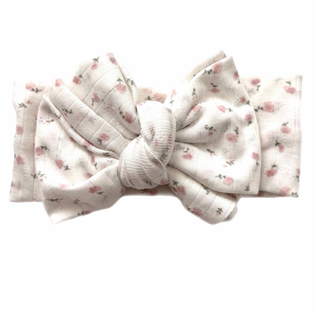 Tea Rose ~ White Pointelle w/ Pink Floral